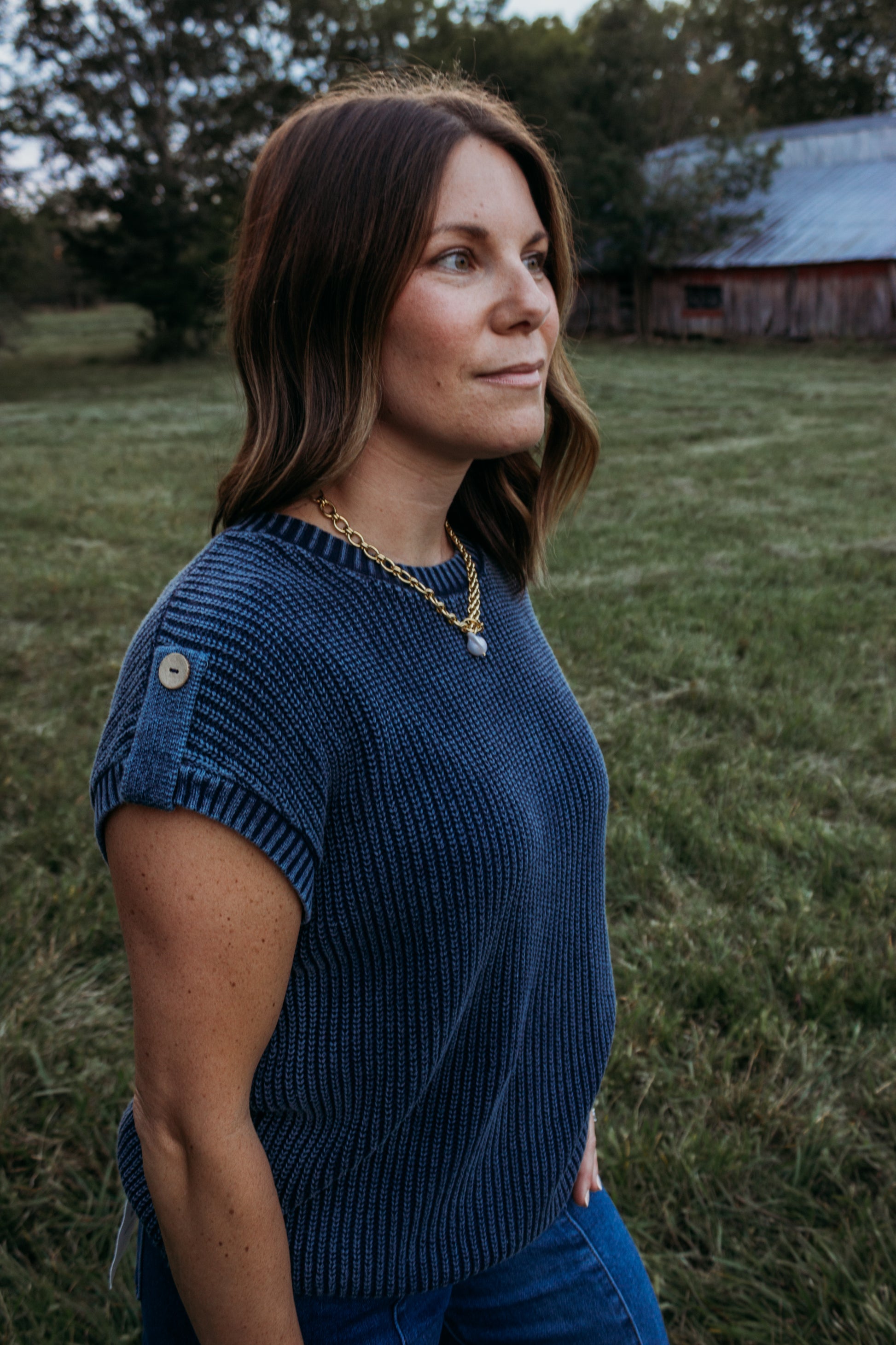 Collins Navy Button Sweater