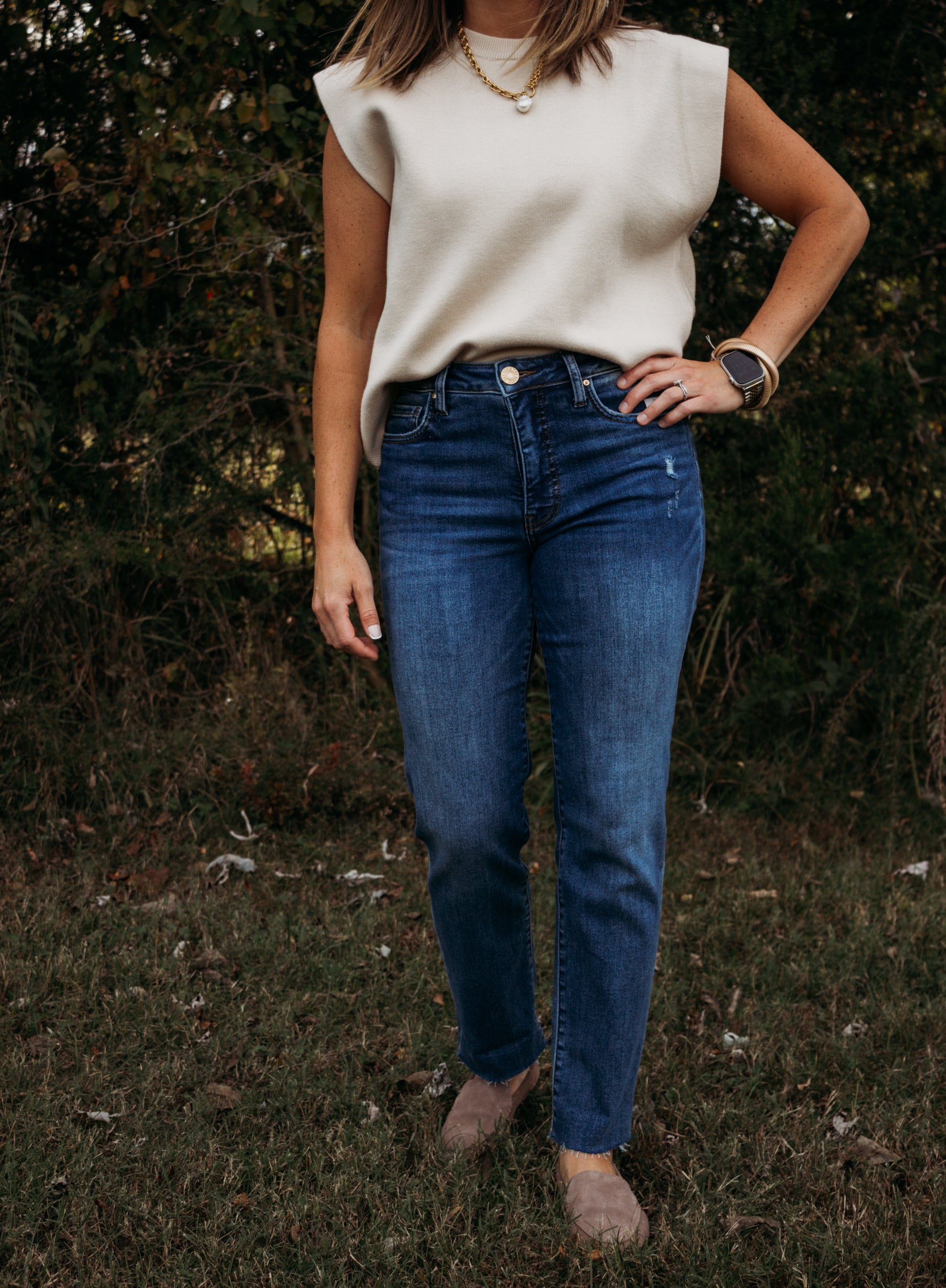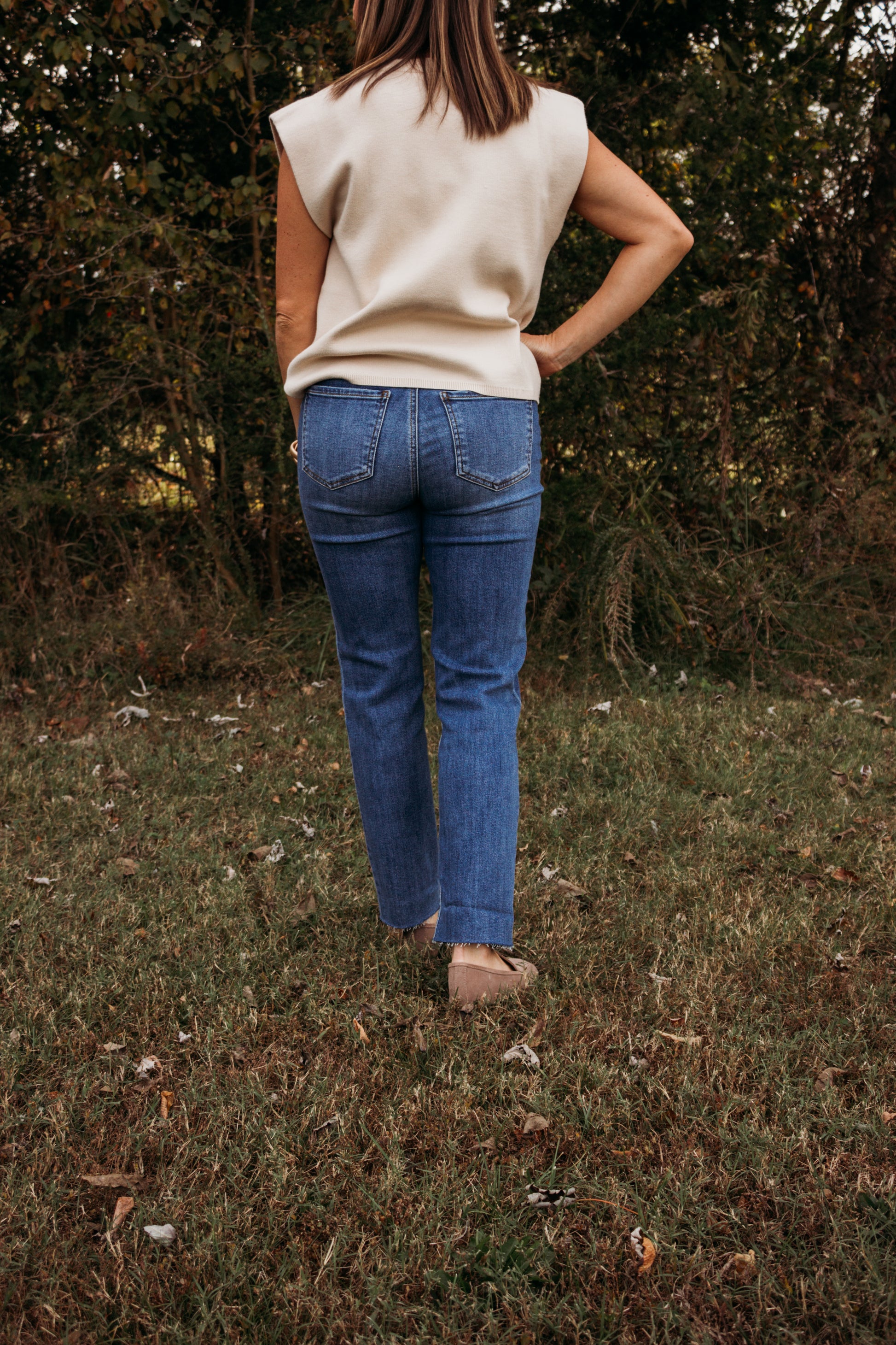 Introducing the REESE High Rise Ankle Straight Raw Hem – INTUITION Denim Pants. These straight-leg jeans feature a flattering 10" high rise, 27" ankle-length inseam, and a versatile 13 3/4" leg opening, making them the perfect balance of comfort and style. The raw hem detail gives them an effortless, on-trend finish that pairs perfectly with sneakers, booties, or heels.